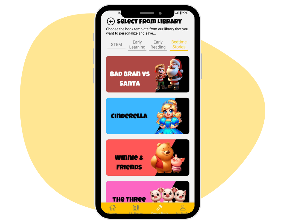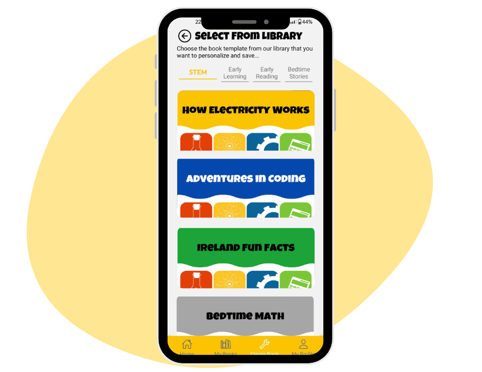 Pick a book template from our every growing library, from learning to speak for babies to learning to read for growing kids to bedtime stories for the whole family.